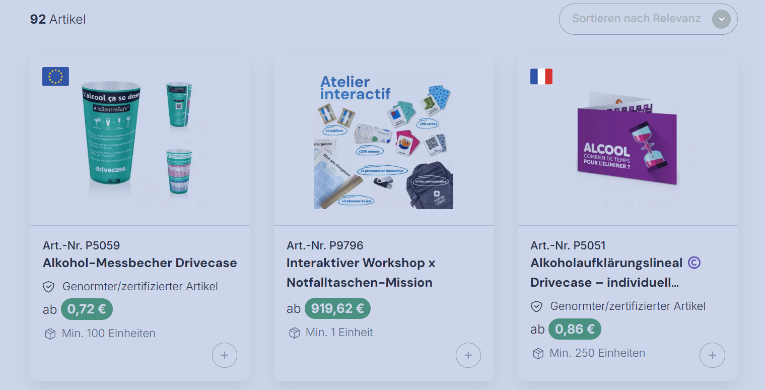 Wir bei Drivecase wissen, dass jedes Unternehmen einzigartige Bedürfnisse und eine eigene Identität hat. Deshalb haben wir eine Reihe von personalisierbaren Produkten entwickelt, die sich perfekt an die Besonderheiten jedes Kunden anpassen. Von personalisierten Memoleisten über Sensibilisierungskampagnen zum Thema Alkohol bis hin zu personalisierten Alkoholtestgeräten – unsere maßgeschneiderten Lösungen tragen nicht nur zur Sicherheit bei, sondern stärken auch das Markenimage unserer Partner. Die Personalisierung geht über das einfache Hinzufügen von Logos hinaus : Sie ermöglicht es, nützliche, relevante und zur DNA jedes Unternehmens passende Objekte zu schaffen und gleichzeitig zu deren Sensibilisierungs- und Präventionsmaßnahmen im Straßenverkehr beizutragen. Durch das Angebot personalisierter Produkte ermöglichen wir unseren Kunden, einen nachhaltigen und wirkungsvollen Eindruck sowohl bei ihren Mitarbeitern als auch bei ihren Partnern zu hinterlassen.