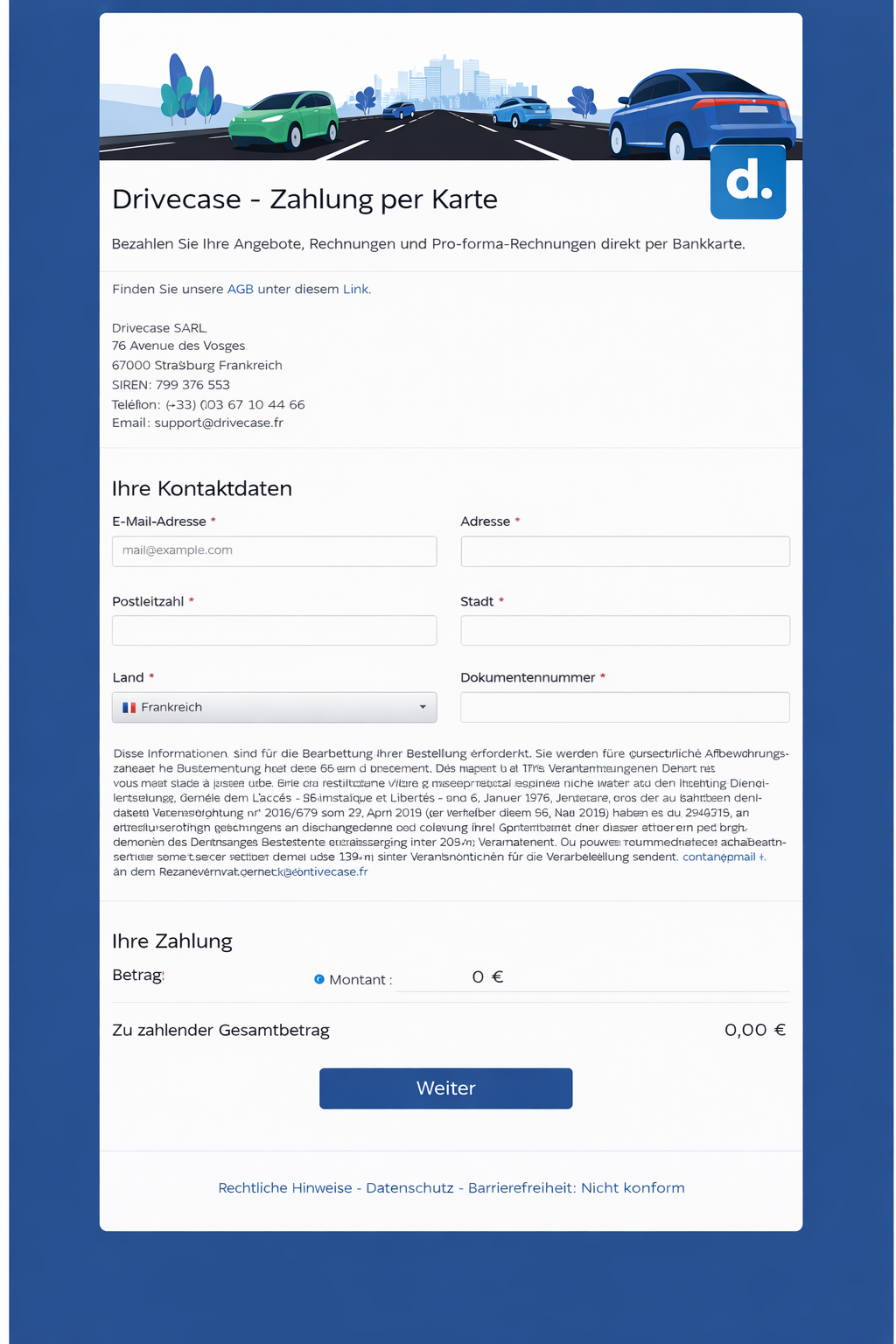 Alle Rechte vorbehalten Drivecase 2026 - Personalisierte Verkehrssicherheitsausrüstung, hohe Sichtbarkeit & Erste Hilfe