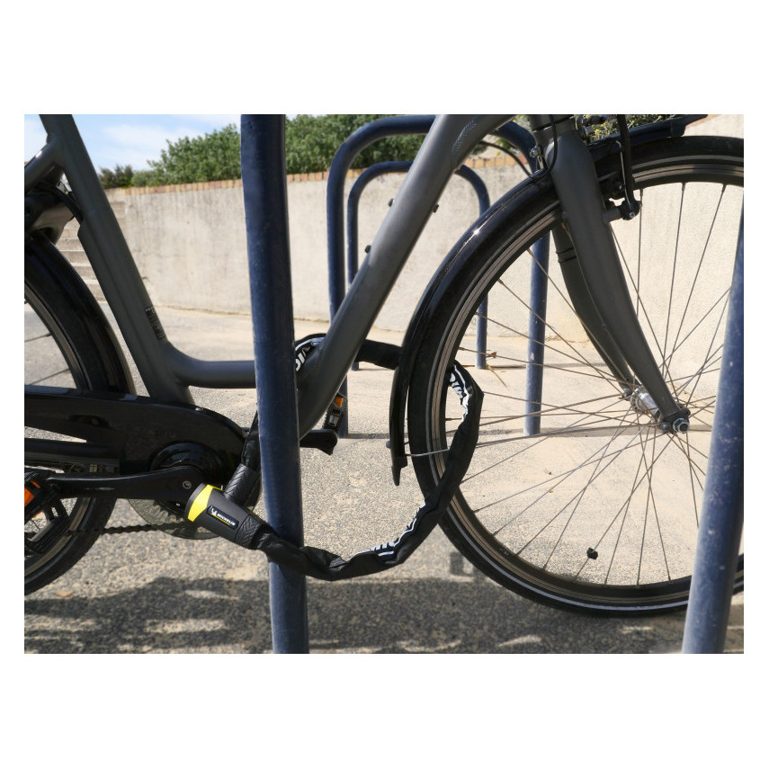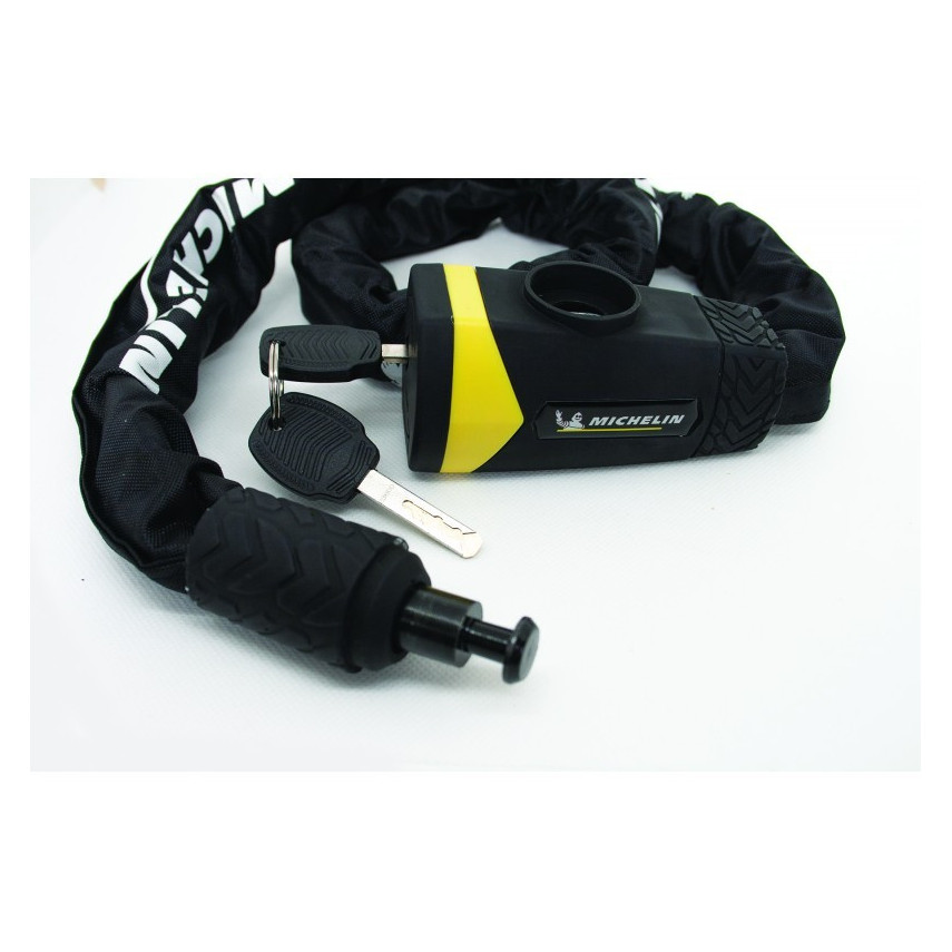 Entdecken Sie unser Kettenschloss für Fahrräder der Marke Michelin. Dieses Schloss mit hoher Sicherheit garantiert Ihnen einen optimalen Schutz Ihres Fahrrads. Es ist widerstandsfähig gegen Aufbruch- und Aufbohrversuche. Unser Kettenschloss eignet sich sowohl für kurze als auch für lange Abstellzeiten. Dank seiner Textilummantelung aus Polyester schützt es den Rahmen Ihres Fahrrads. Dieses Schloss fühlt sich angenehm an und ist so konzipiert, dass es den Lack des Fahrrads nicht beschädigt.