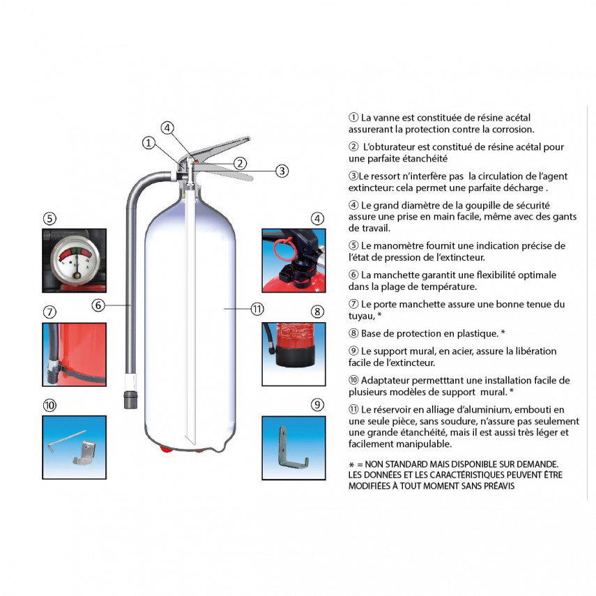 - B: durch brennbare Flüssigkeiten oder verflüssigbare Feststoffe: Kohlenwasserstoffe, Farben, Fette, Alkohole usw.- C: durch brennbare Gase: Butan, Propan, Synthesegas, Erdgas usw.  Der Behälter ist korrosionsgeschützt und ermöglicht den Einsatz des Feuerlöschers bei Temperaturen von –30 °C bis + 60 °C, wodurch der Feuerlöscher auch in Ländern mit extremen Temperaturen geeignet ist. Alle Feuerlöscher werden durch ein elektronisches Helium-Leckageerkennungssystem überwacht.