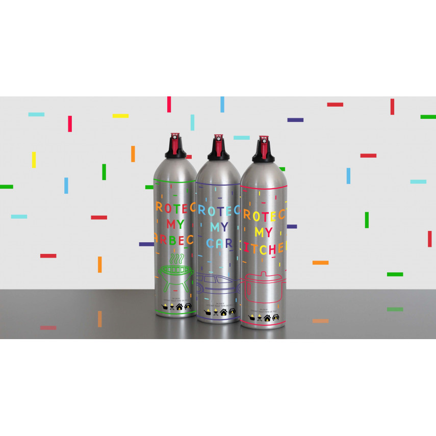 Dieser personalisierte Feuerlöscher eignet sich zum Löschen aller Arten von Bränden (ABF): Holz, Papier, Karton, Diesel, Benzin, Kohlenwasserstoffe, Frittieröl...