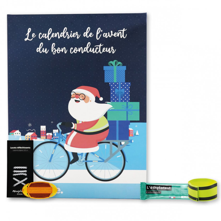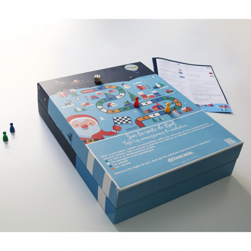 Art.-Nr.P9521Adventskalender Verkehrssicherheit zur Sensibilisierung, Vermittlung oder Auffrischung der Grundlagen der Straßenverkehrsordnung! Dieser originelle Adventskalender enthält 24 Accessoires zur Verkehrssicherheit (reflektierende Schnürsenkel, Alkoholtester, Rückstrahler, Sattelbezüge usw.) und ein Brettspiel, um mit der ganzen Familie die Grundlagen der Verkehrsregeln zu wiederholen! Als Firmengeschenk für Ihre Mitarbeiter, Interessenten oder Versicherten in der Weihnachtszeit.