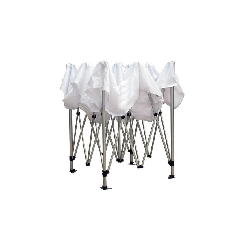 Es bietet Ihnen eine große Druckfläche auf den Giebelwänden und dem Dach, sodass Sie es ganz nach Ihren Bedürfnissen personalisieren können. Wasserdichte Polyesterplane und Aluminiumkonstruktion. Konstruktion hergestellt in China, Druck in Spanien.