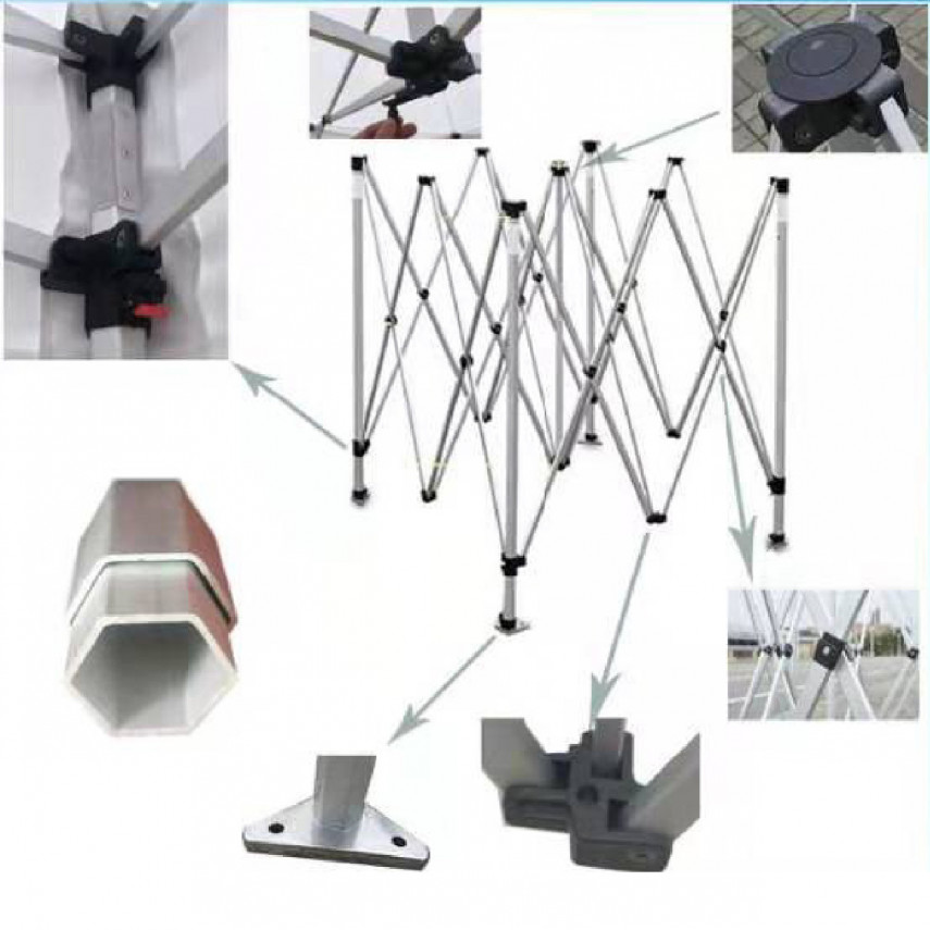 Das individuell gestaltbare Festzelt wird mit 4 sechseckigen Masten und einer Transporttasche geliefert.