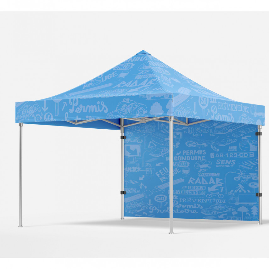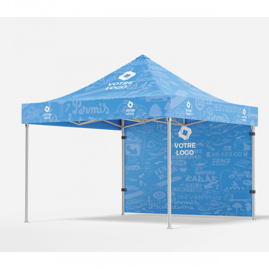 Dieses personalisierte Zelt ist das ideale Werkzeug, um Ihre Sichtbarkeit zu erhöhen und Ihnen bei Veranstaltungen im Freien Schutz zu bieten: Messen, Festivals, Präventionsveranstaltungen... Dieses personalisierte 3x3-Zelt wird mit einer Tasche mit Rollen geliefert, um den Transport zu erleichtern (Taschenformat 156 x 26 x 26 cm).