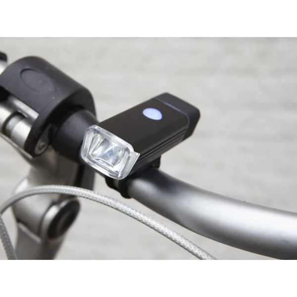 Die Lenkerlampe verfügt über ein USB-System 1 x Li-Polymer 300 mAh , mit dem sie an jedem USB-Anschluss, z. B. an einem Computer, aufgeladen werden kann, wodurch der Aufwand für Batterien entfällt.