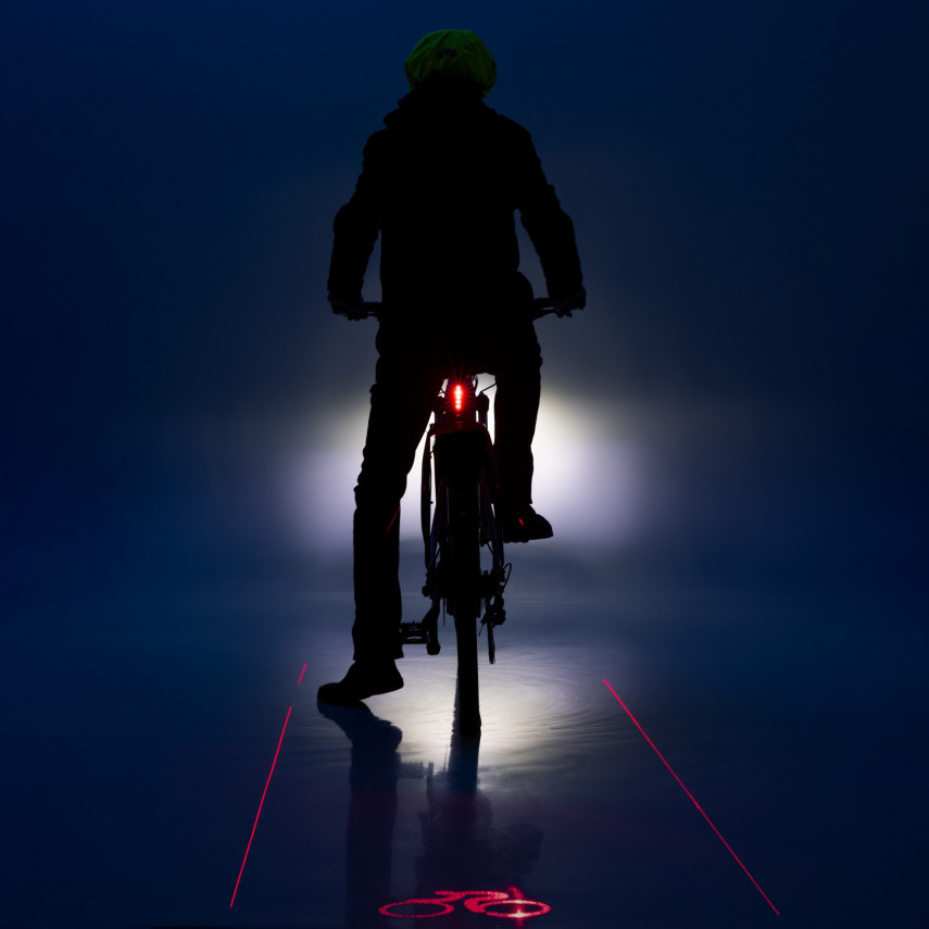Das Ziel dieser Fahrradlampe ist einfach und innovativ: Ihre beiden Laserstreifen definieren einen Sicherheitsbereich für den Radfahrer und erinnern unachtsame Autofahrer daran, Abstand zu den Fahrrädern zu halten, die sie überholen.