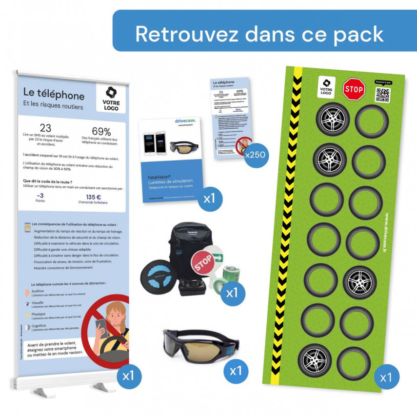 Art.-Nr.P6439Paket zur Prävention der Gefahren durch Smartphone-Nutzung und Müdigkeit am Steuer. Pädagogisches Paket mit vernetzter Brille. Ideal für die Durchführung eines Workshops zur Verkehrssicherheit.