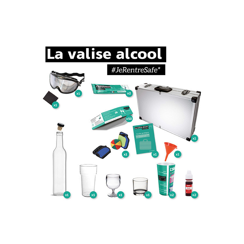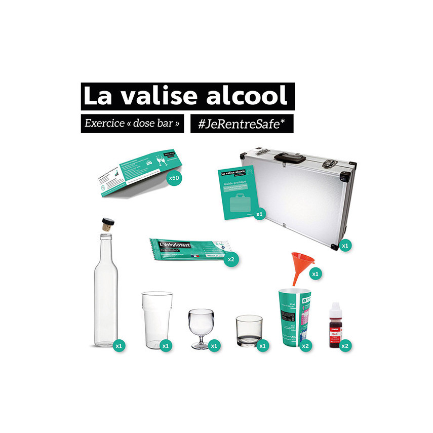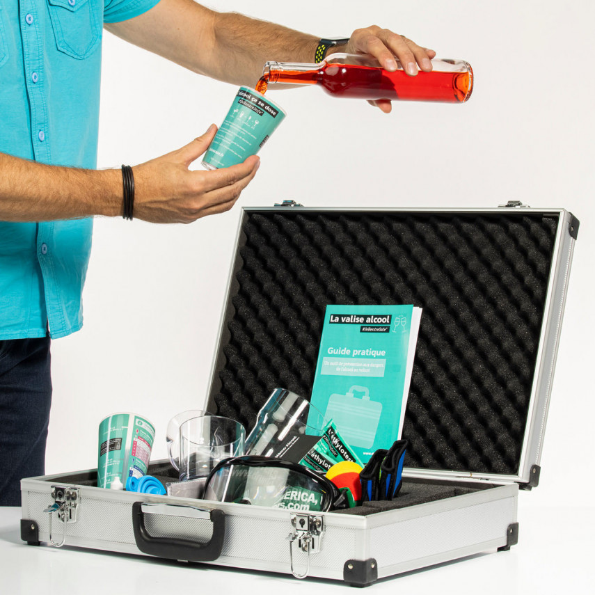 Dieser Koffer eignet sich ideal für die Durchführung eines Präventionsworkshops und ist ein echtes pädagogisches Hilfsmittel, mit dem Sie auf innovative Weise über die Gefahren des Alkohols am Steuer diskutieren können. Außerdem können Sie damit das Bewusstsein der Teilnehmer schärfen.