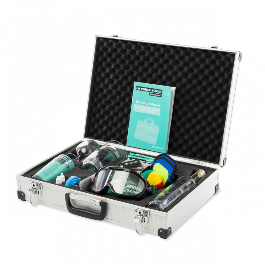 Der Alkoholkoffer enthält eine Reihe von Accessoires, mit denen Sie verschiedene Präventionsworkshops durchführen können. Er enthält insbesondere: