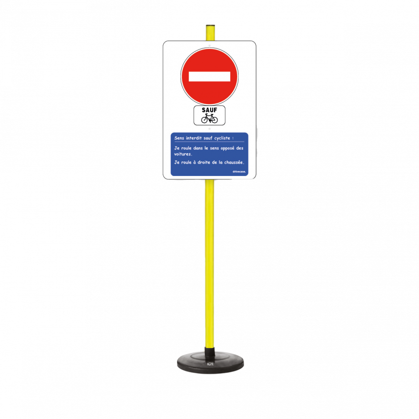 Bitte beachten Sie, dass jedes Element des Lehrschilds „Verbotene Fahrtrichtung außer für Radfahrer” in zwei separaten Teilen geliefert wird: zum einen die Markierung mit ihrem beschwerten Fuß und zum anderen alle anderen Elemente.