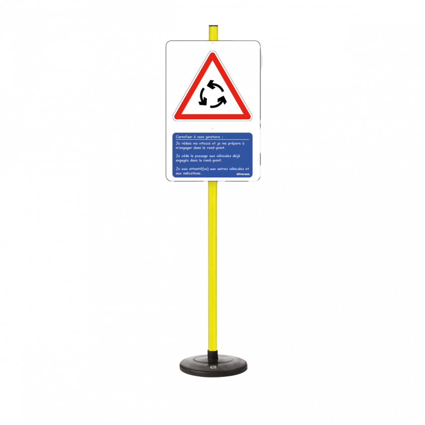 Aufklärungsplakat Kreisverkehr aus PVC mit Pfosten und beschwertem Fuß. Das Plakat lässt sich leicht abnehmen und eignet sich ideal für die Durchführung von pädagogischen Workshops.