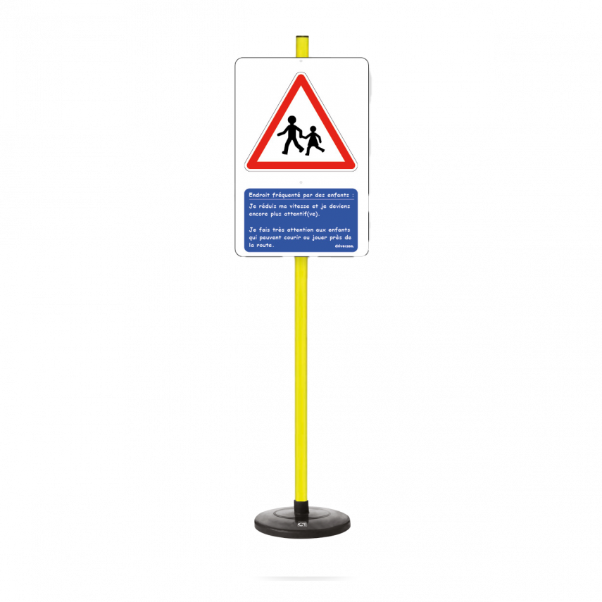 Art.-Nr.P9670Aufklärungsplakat „Von Kindern frequentierter Ort” aus PVC mit Pfosten und beschwertem Fuß. Das Plakat lässt sich leicht abnehmen und eignet sich ideal für die Durchführung von pädagogischen Workshops.