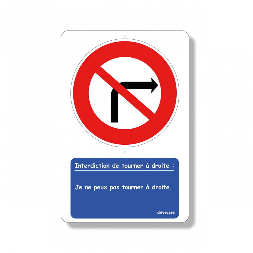 Dieses pädagogische Schild Rechtsabbiegeverbot erklärt Radfahrern und Fahrradfahrern auf spielerische Weise anhand von Hinweisen auf der Unterseite des Schildes, wie sie sich bei dieser Art von Schild verhalten sollen.