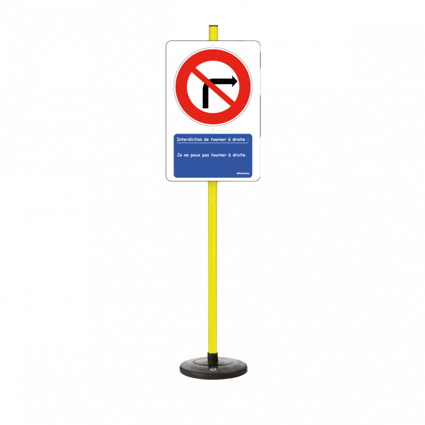 Bitte beachten Sie, dass jedes Element der Lerntafel „Rechtsabbiegen verboten“ besteht aus zwei separaten Teilen: zum einen aus dem Schild mit seinem beschwerten Fuß und zum anderen aus allen anderen Elementen.