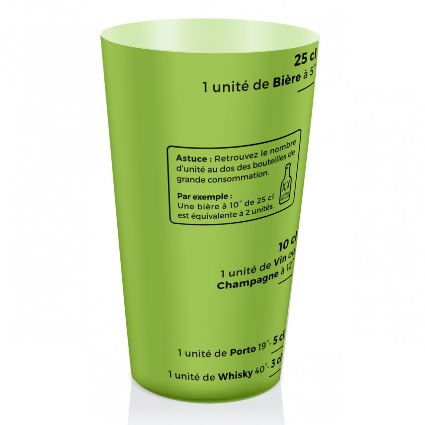 Detaillierte Beschreibung des Artikels Becher zur Alkoholprävention – individuell gestaltbar, grün