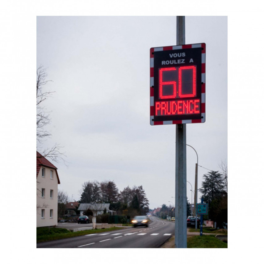 Das mobile pädagogische Radargerät ist ein Instrument zur Verhinderung von Geschwindigkeitsüberschreitungen. Dazu zeigt es dem sich nähernden Fahrer die Geschwindigkeit an und gibt bei zu hoher Geschwindigkeit eine Warnmeldung aus, z. B. „zu schnell“. Dank seiner flexiblen Programmierung können Sie 8 verschiedene Geschwindigkeitsgrenzen entsprechend den Geschwindigkeitsbegrenzungen der jeweiligen Zone einstellen, sei es in Wohngebieten, in der Nähe von Schulen oder in Risikobereichen. Darüber hinaus verfügt es optional über ein Datenerfassungssystem, mit dem Sie die Anzahl der Fahrzeuge, die täglich auf der Straße unterwegs sind, und deren Geschwindigkeit ermitteln können.