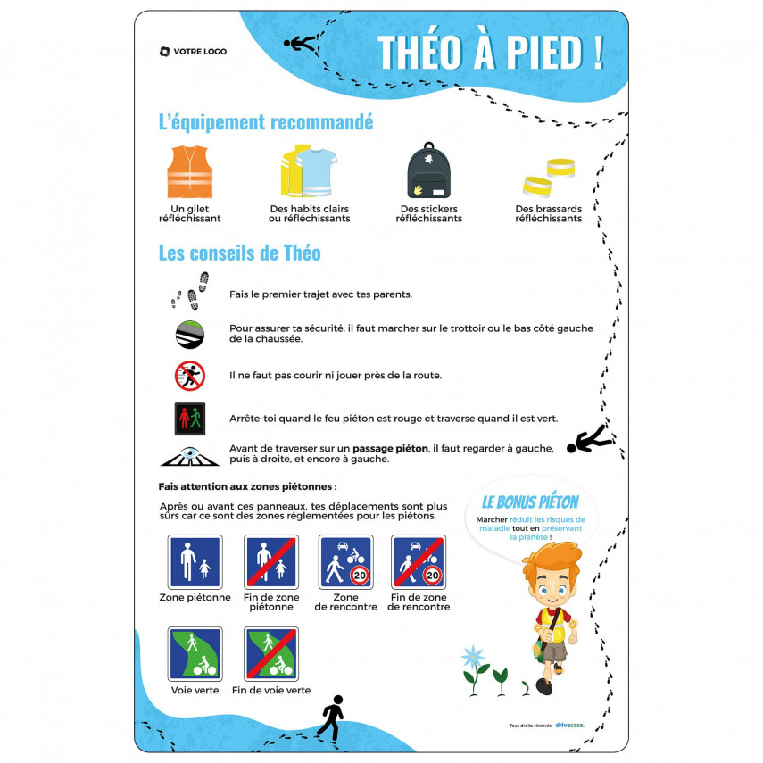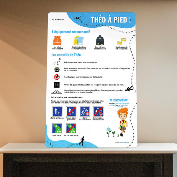 Dieses Lehrmittel informiert die Kinder über die obligatorische Sicherheitsausrüstung im Straßenverkehr, aber auch über die richtigen Reflexe , die man als Fußgänger anwenden sollte. Um die Sicherheit von Kinder als Fußgänger bietet diese PVC-Tafel wertvolle Tipps für ihre Sicherheit.