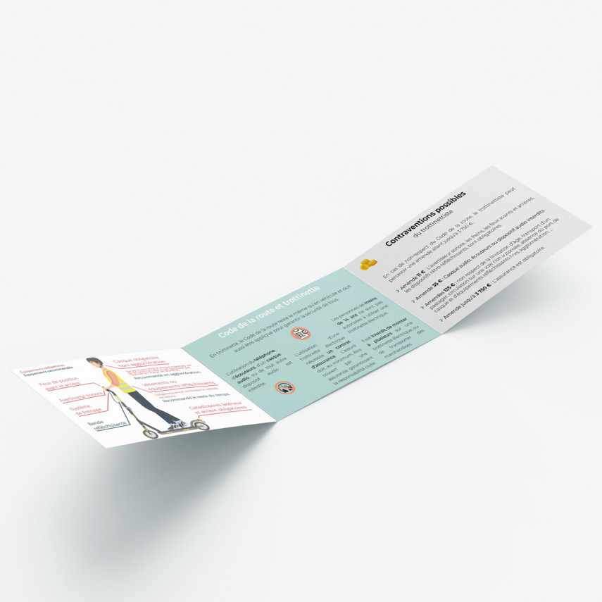 Ergänzend zu den personalisierbaren Drivecase-Memo-Roller © können Sie das Roll-Up-Display und den Sensibilisierungsflyer (P8638 und P8639) verwenden. Diese Lehrmittel präsentieren Statistiken und informieren über Vorschriften und obligatorische/empfohlene Ausrüstung für die Fortbewegung mit dem Elektroroller.