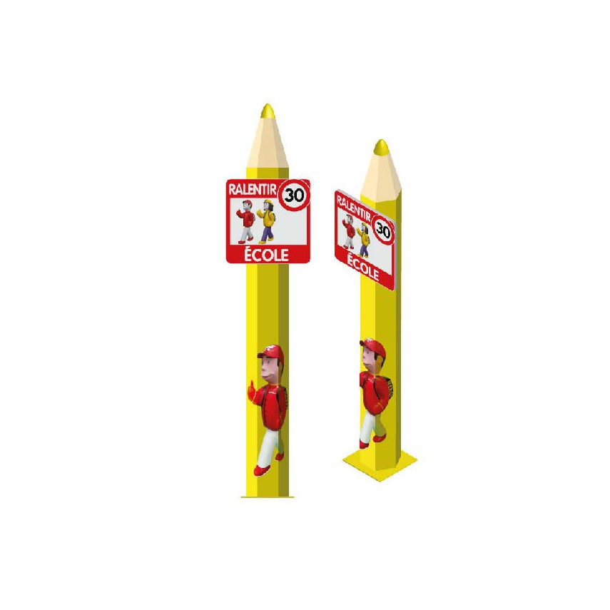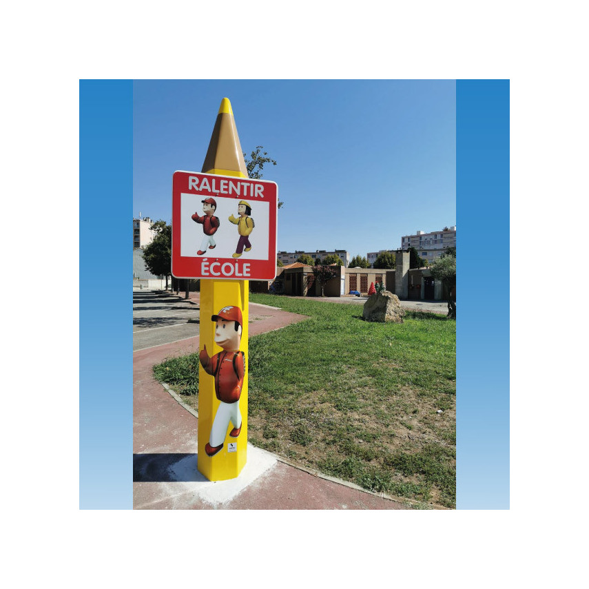Art.-Nr.P9608Machen Sie mit einem 3 m hohen Totem effektiv auf die Anwesenheit einer Schule aufmerksam. Dank seiner retroreflektierenden Buchstaben und leuchtenden Farben ist es Tag und Nacht gut sichtbar. Dieses robuste Produkt aus Verbundmaterial wird vollständig in Frankreich hergestellt.