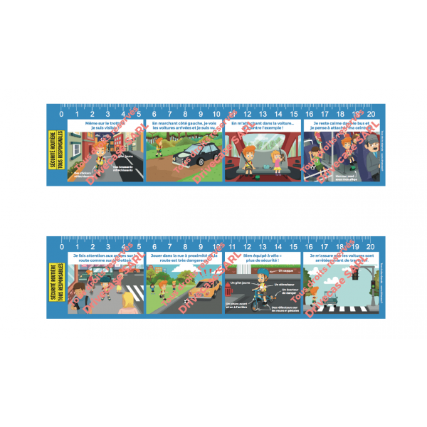 20-cm-Lineal „La Sécurité Routière avec Théo” (Verkehrssicherheit mit Théo) – individuell gestaltbar: passende Ergänzungen