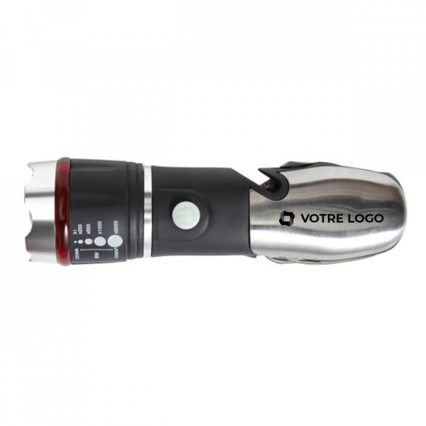 Diese Taschenlampe verfügt über einen Hammer zum Einschlagen von Scheiben und einen Gurtschneider, mit denen Sie sich im Falle eines Unfalls schnell und effizient aus Ihrem Fahrzeug befreien können. Verstauen Sie sie einfach im Handschuhfach oder in der Fahrertür, damit sie im Notfall griffbereit ist. Darüber hinaus verfügt diese Taschenlampe über ein Multifunktionsmesser, das in jeder Situation nützlich ist.>Dieses personalisierbare Accessoire ist ideal für Ihre Vertriebsmitarbeiter, Lkw-Fahrer, Spediteure oder potenziellen Kunden, die regelmäßig unterwegs sind, und eignet sich als hochwertiges und nützliches Mitarbeitergeschenk. Fügen Sie Ihr Logo dank einer Tampondrucktechnik auf dem Griff auf einer Fläche von 30 x 20 mm hinzu.