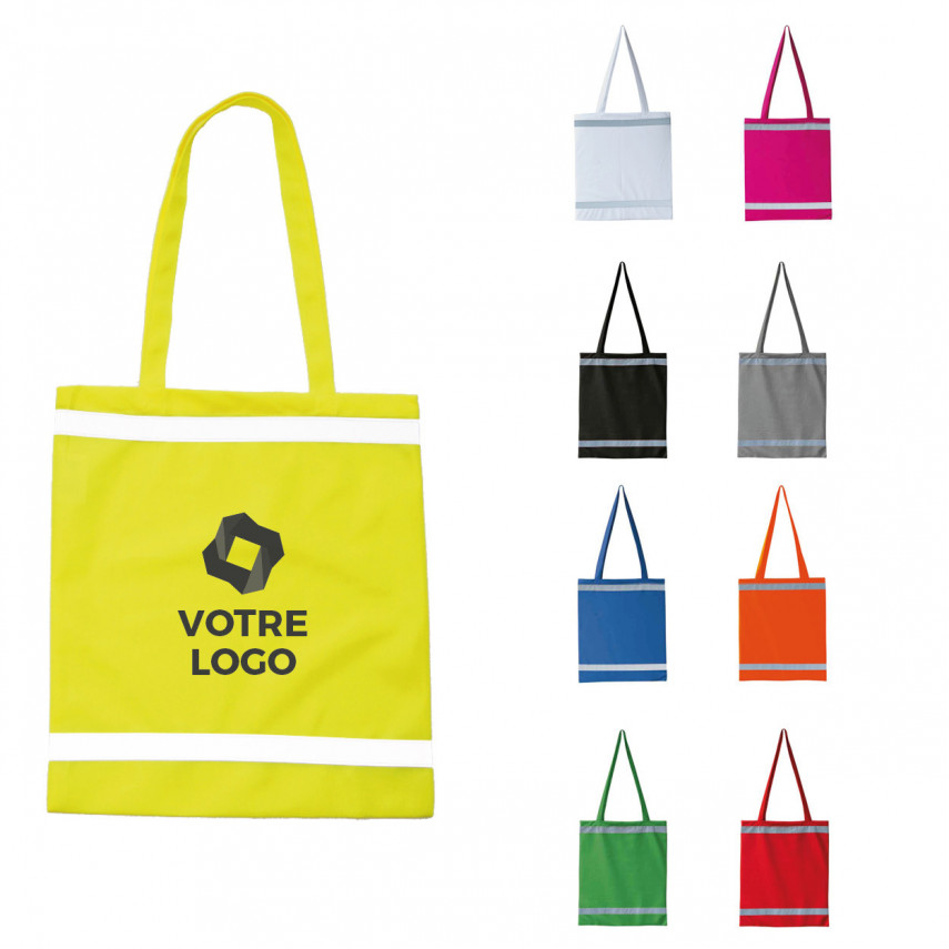 Art.-Nr.P1057Personalisierte reflektierende Tragetasche hochwertige , ausgestattet mit zwei Reflexstreifen . Sichtbar bis zu 150 Meter.