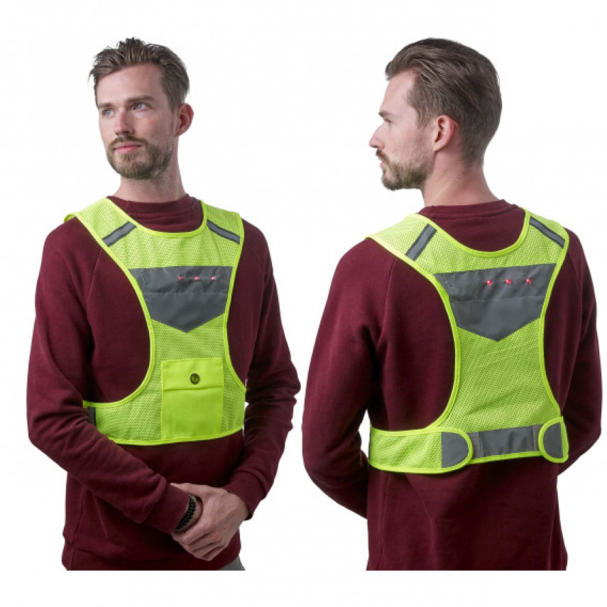 Diese Weste aus reflektierendem Netzgewebe mit LEDs ist ein ideales Accessoire für gute Sichtbarkeit. Ob am Straßenrand oder bei sportlichen Aktivitäten wie Laufen, Radfahren usw. Diese fluoreszierende Weste sorgt dank der integrierten LEDs auf der Vorder- und Rückseite der Weste für optimale Sicherheit und Sichtbarkeit von vorne und hinten.