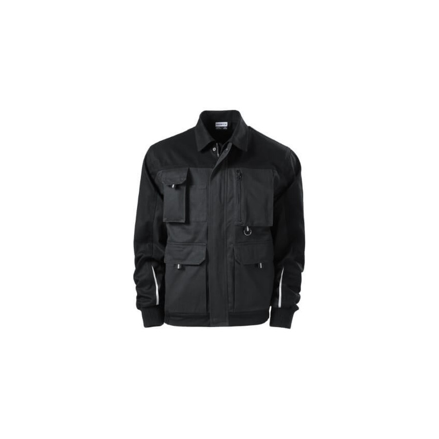 Diese Arbeitsjacke verfügt über 8 Multifunktionstaschen, Balgtaschen mit Patte sowie Paspeltaschen mit Reißverschluss. Ein Metall-D-Ring sowie ein Karabinerhaken für Schlüssel oder Ausweise sind ebenfalls in die Jacke integriert. Die Ärmelbündchen sind mit 3 % Elasthan verstärkt und die Nähte sind für eine längere Haltbarkeit doppelt vernäht.