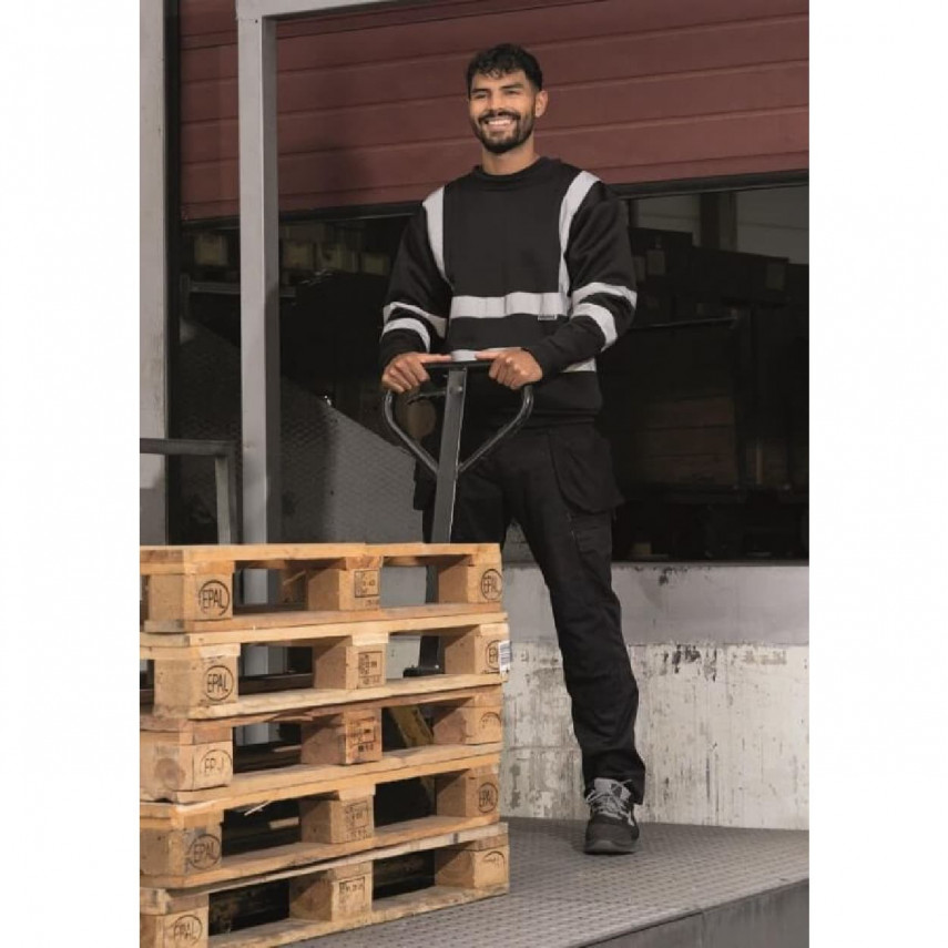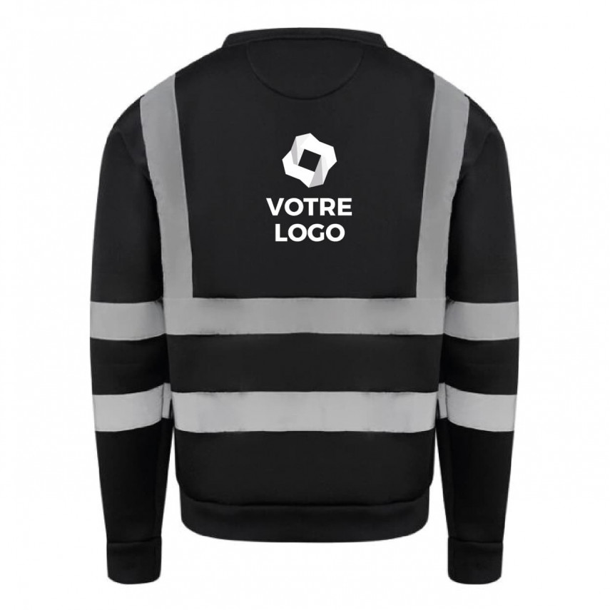 Personalisierbarer Pullover mit 4 Streifen reflektierend 3M-zertifiziert. Dieser Pullover eignet sich für Personen, die in einer potenziell gefährlichen Umgebung arbeiten und gut sichtbar sein müssen: Industrie, Transport und Logistik, Bauwesen, Flughäfen usw. Er passt sich sowohl männlichen als auch weiblichen Körperformen an.