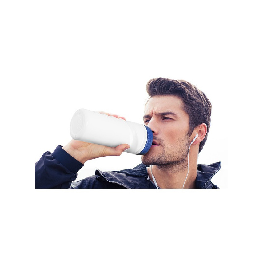 Die Trinkflasche hat ein Fassungsvermögen von 500 ml, was einer halben Flasche Wasser entspricht. Sie besteht aus Kunststoff und wurde ergonomisch gestaltet, um unter allen Bedingungen einen guten Halt zu bieten. Der Schraubverschluss ermöglicht ein luftdichtes Verschließen der Trinkflasche hermetisch verschließen, um ein Auslaufen von Flüssigkeit zu verhindern. Der Sicherheitsdosierer am Verschluss sorgt für die Dichtheit der Trinkflasche und schützt den Benutzer vor möglichen Leckagen in seiner Tasche.