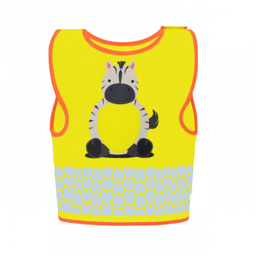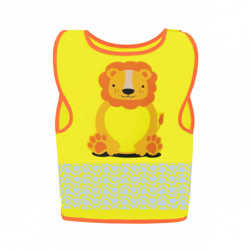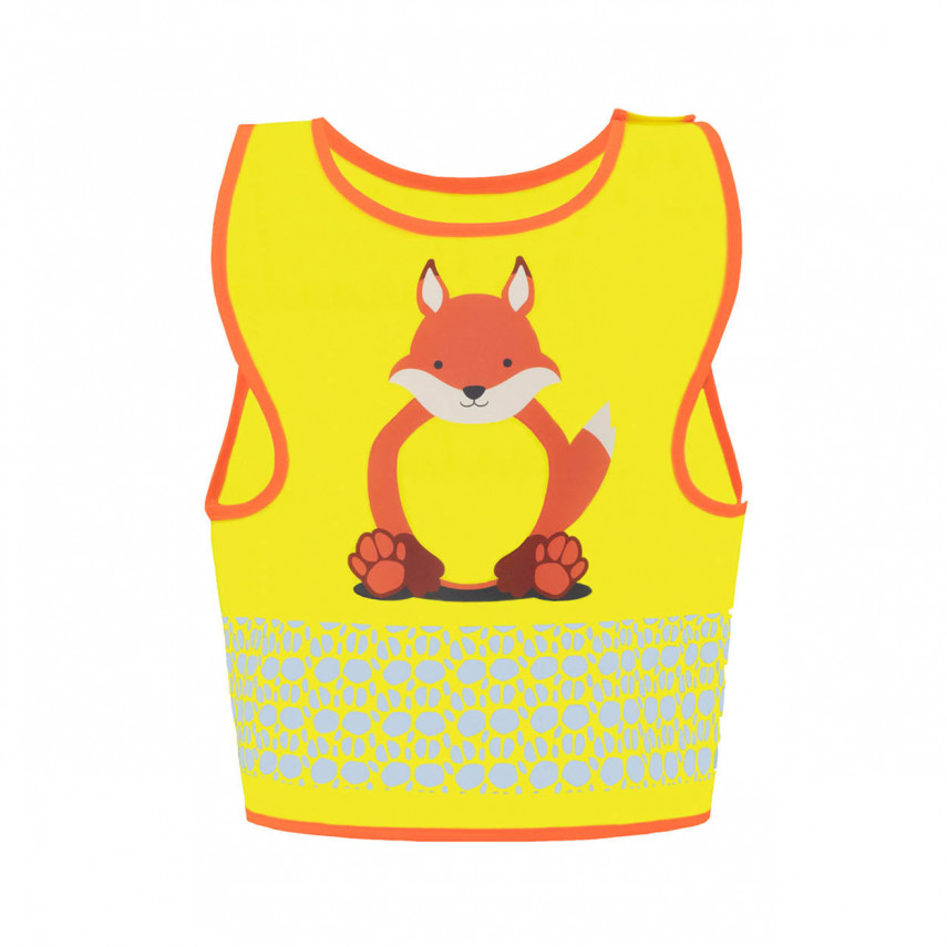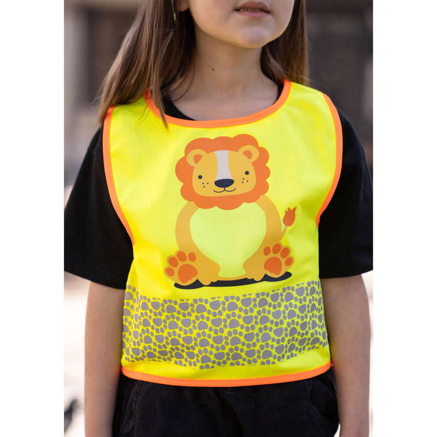 Jede leuchtend gelbe Weste ist auf der Vorderseite mit einem hübschen Tiermotiv verziert, wodurch jedes Stück zu einem Unikat wird. Mehr als nur eine Weste, ist sie ein Begleiter, den Kinder gerne tragen. Die reflektierenden Streifen, die von Tierspuren inspiriert sind, sorgen für einen verspielten Touch und garantieren gleichzeitig optimale Sichtbarkeit.