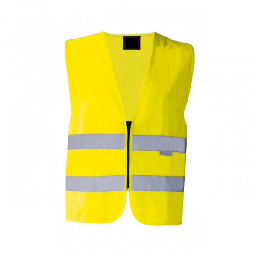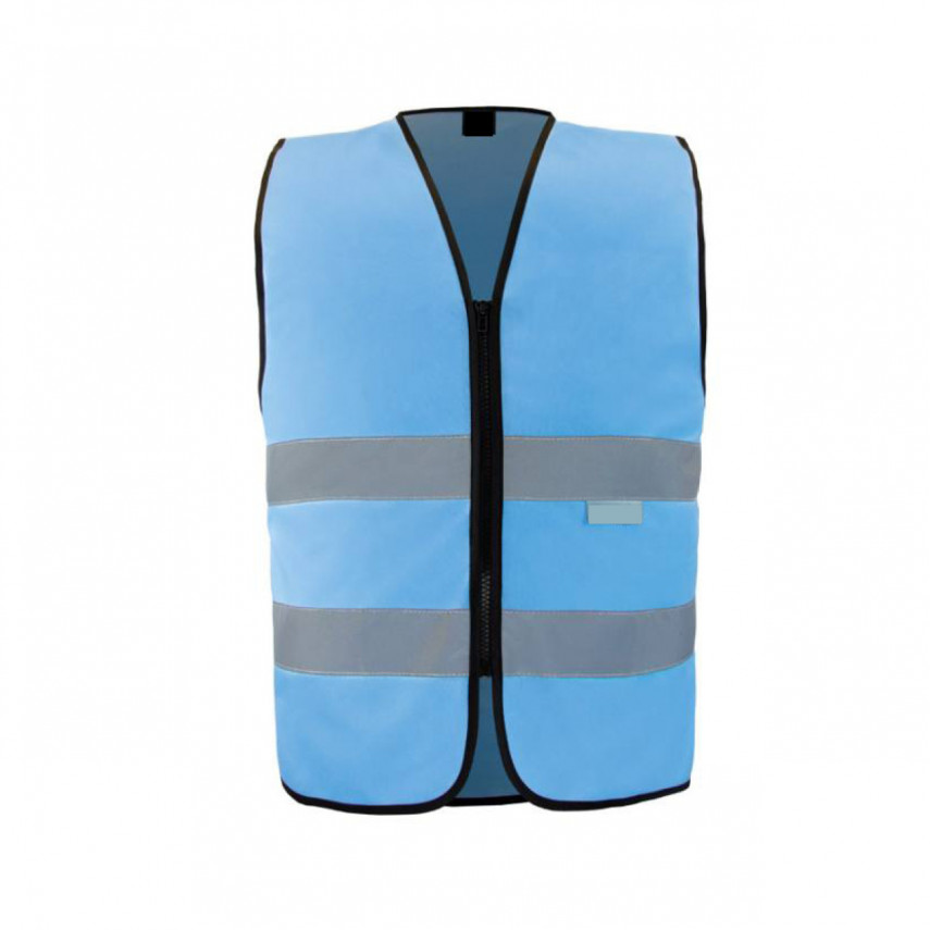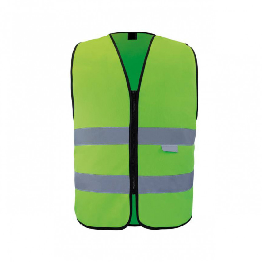 Personalisierte Sicherheitsweste für Erwachsene mit Reißverschluss, erhältlich in 7 Größen und 6 Farben. Die Normen für die Westen variieren je nach Farbe. OEKO-TEX Standard 100-Label.