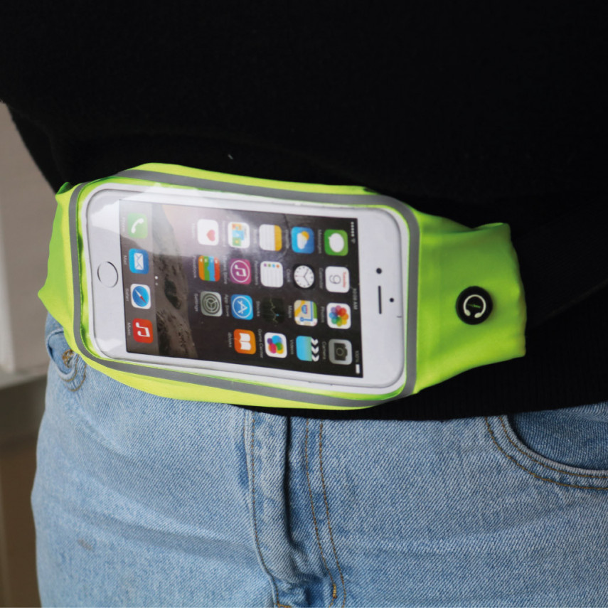 Art.-Nr.P1081Entscheiden Sie sich für Ihre Sport- und Freizeitaktivitäten für unsere personalisierbare reflektierende Gürteltasche. Mit einem zentralen PVC-Fenster, einer Kabeldurchführung und einer Tasche mit Reißverschluss ist sie das perfekte Accessoire, um Ihr Smartphone geschützt und griffbereit zu haben.