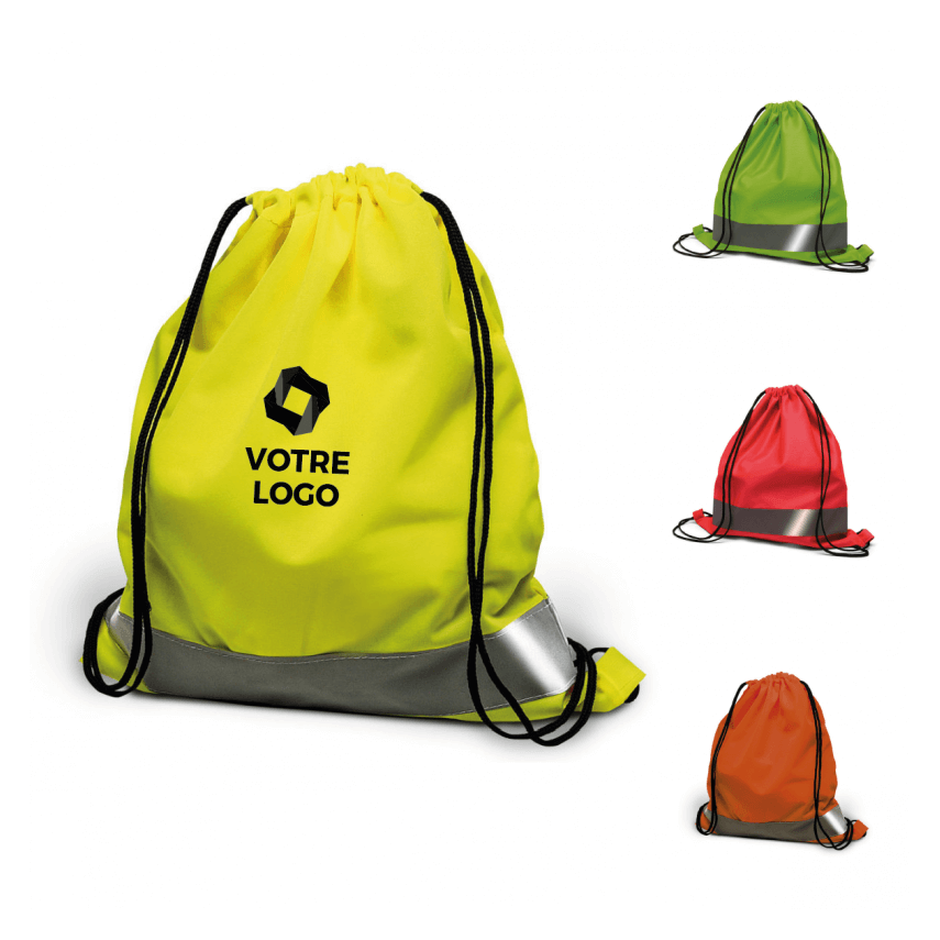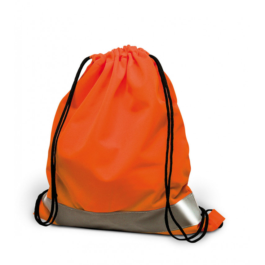 Art.-Nr.P1039Hochwertige personalisierte reflektierende Kordeltasche mit 2 Trägern und einem 5 cm hohen reflektierenden Streifen. Praktisch zu transportieren und dick, ideal zum Verstauen von Sportartikeln.