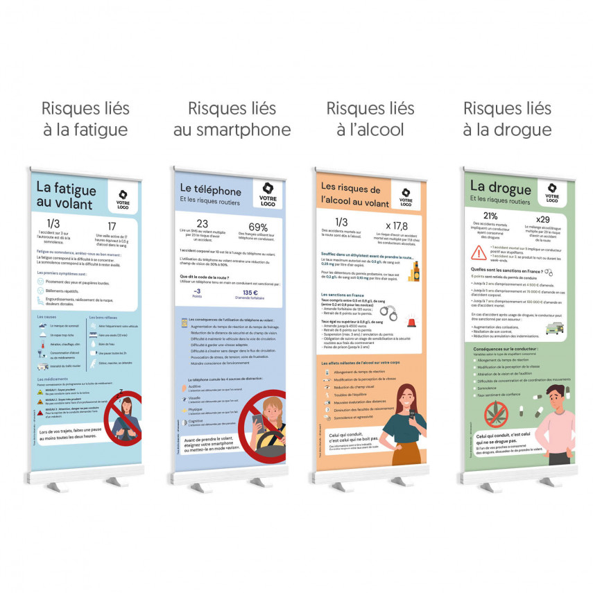 - 4 Kakemonos zur Sensibilisierung: Alkohol, Drogen, Smartphone, Müdigkeit