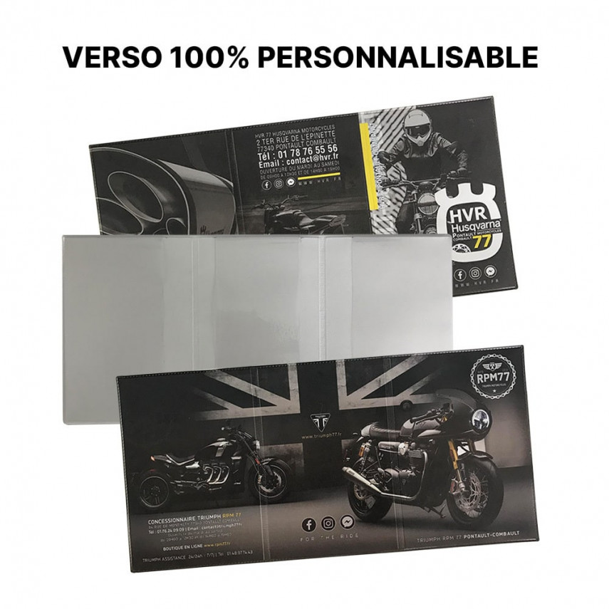 Dieser Motorrad-Fahrzeugscheinhalter ist vollständig personalisierbar. Durch die Vierfarb-Personalisierung können Sie einen originellen Fahrzeugscheinhalter ganz nach Ihrem Geschmack gestalten. Er ist kostengünstig und sehr praktisch und somit das ideale Geschenk für Ihre Kunden nach dem Kauf eines Motorrads oder einer Dienstleistung.