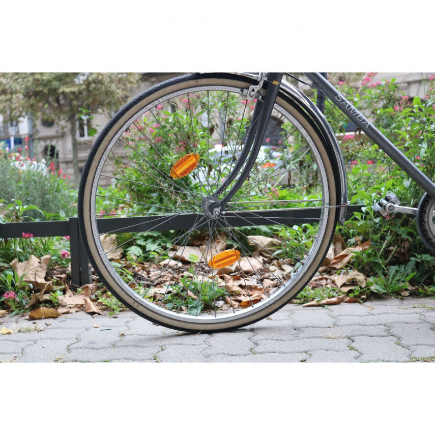 - 2 orangefarbene Rückstrahler zur Befestigung an den Rädern