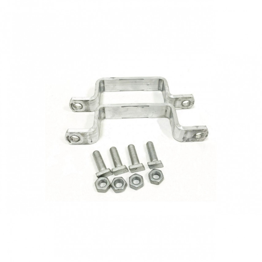 • Zwei Klemmschellen und vier Schrauben und Bolzen (M8) für eine sichere Befestigung der Silhouette am Pfosten.