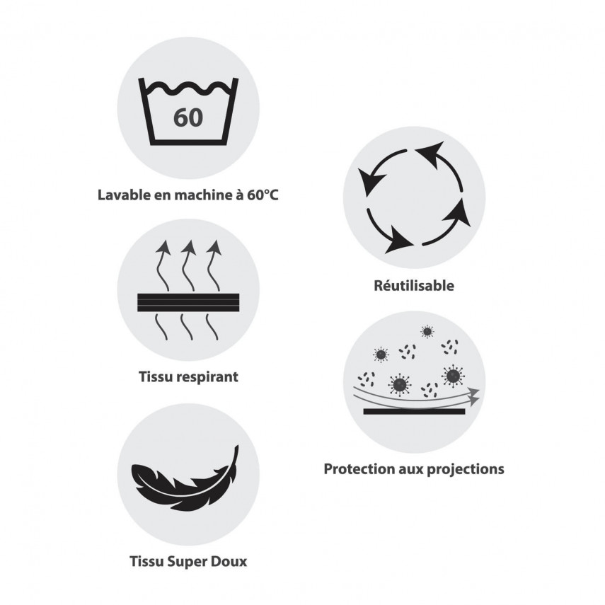 Caractéristiques du produit Masque alternatif AFNOR lavable +50 fois (barrette nasale)