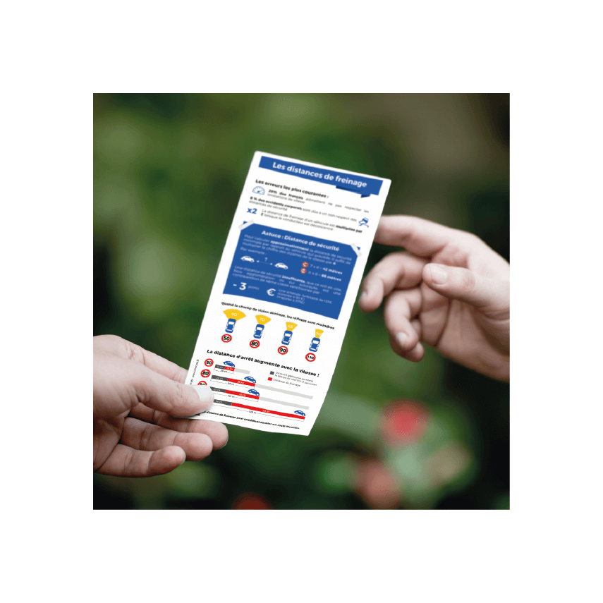 Le flyer de sensibilisation sur les distances de freinage est disponible en version neutre et personnalisée.