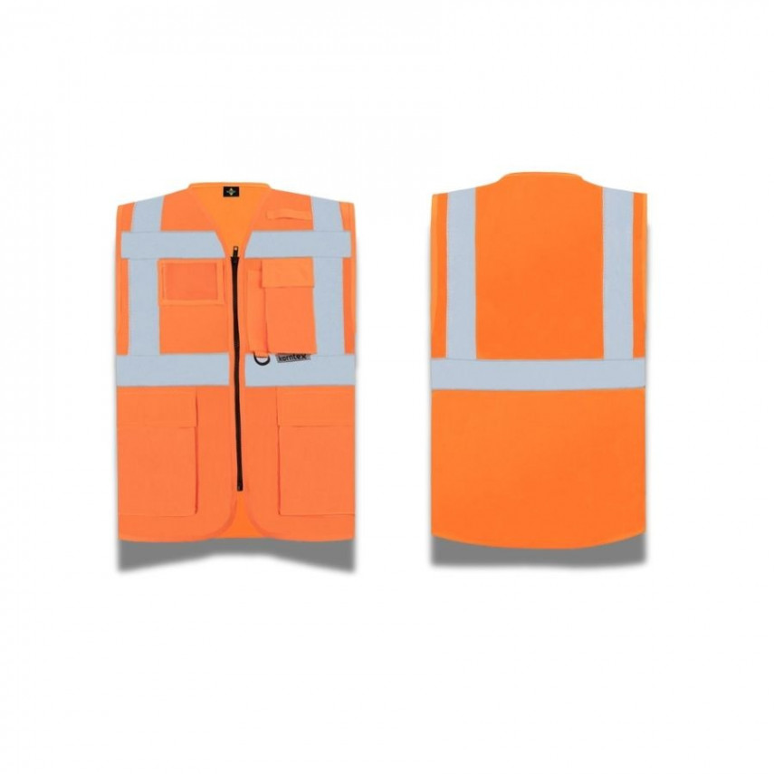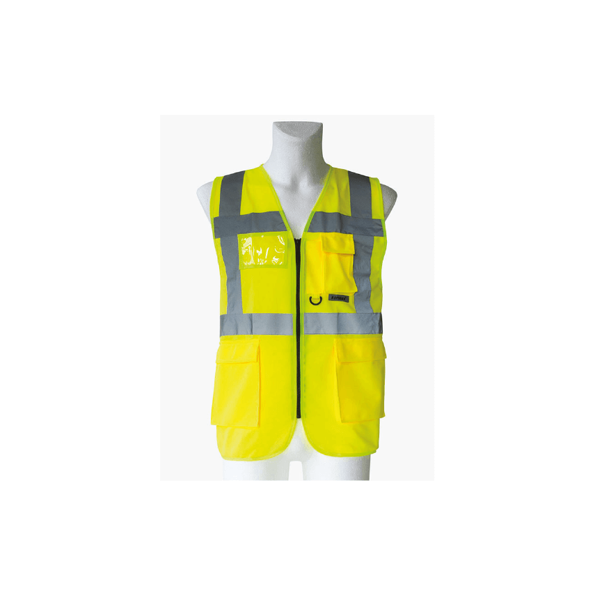 Bien souvent, le gilet de sécurité se place sur la tenue, restreignant l'accès aux poches. Ce gilet de sécurité fluorescent fait la différence grâce à ses 3 grandes poches à l'avant et son emplacement transparent pour insérer une carte de visite au niveau de la poitrine.